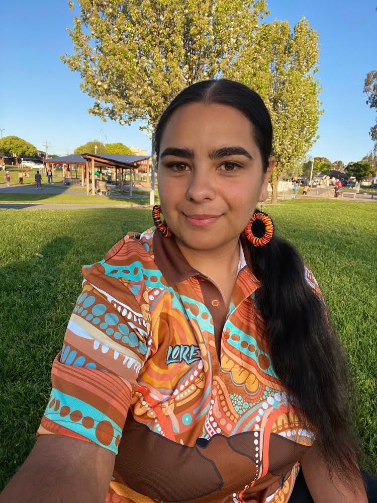 My name is Alkina Edwards and I am a very proud Indigenous woman Living on Yorta Yorta Country (Shepparton) but originally from Echuca. The body of works I create are about self expression, self-determination, identity, culture, family, community and love.
