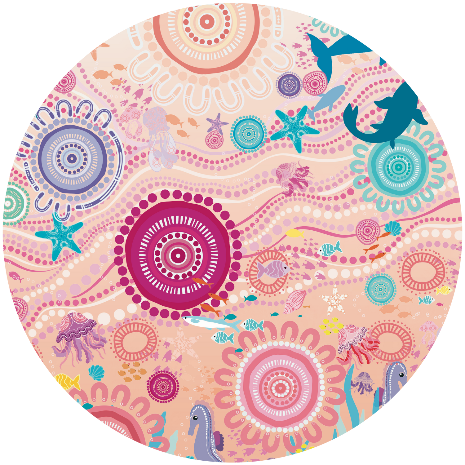 This Indigenous piece is inspired by the ocean meeting the land, celebrating all creatures big and small.